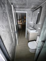 – Pavimento vinílico imitación madera, de fácil mantenimiento y estético, aportando calidez y elegancia al interior.